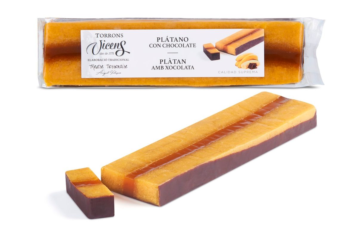 Turrón Artesano Mazapan de plátano con chocolate Especial alargado 300 grs Vicens